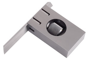 | • Messlineal aus Hartmetall, geschliffen • 2 Messkanten und Messflächen geläppt • Lineal verschiebbar und in jeder Lage feststellbar durch Klemmspindel. • Rechtwinklige Lage des Lineals mit einem Gewindestift um ± 15° verstellbar • Körper gehärtet und mattverchromt • Lieferung im Holzetui |