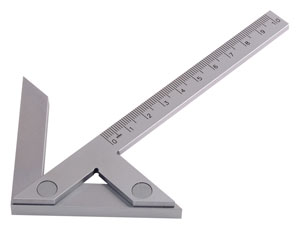 | Anwendung: •Zentrierwinkel zum Anreissen des Zentrums an Stirnflächen von Wellen und Scheiben Ausführung: • Normalstahl, verchromt, Messflächen fein geschliffen • Anschlagmaßstab mit mm-Skalierung auf dem Anreißlineal |