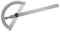 | • Gradeinteilung 0° - 180° • Stahl, mattverchromt • Meßschenkel und Gradbogen sind mit Schraubbolzen und Rändelmutter beweglich verbunden und können an jedem Punkt festgestellt werden |