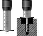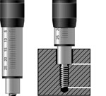 Metrisches ISO-Regelgewinde, DIN 13-6H, Messtiefenablesung 0,5 mm Metrisches ISO-Regelgewinde, DIN 13-6H, genauere Messtiefenablesung mittels Nonius 1/10 mm, zusätzliche Klemmung der Skalenhülse. Gewindeeinsätze Gut |